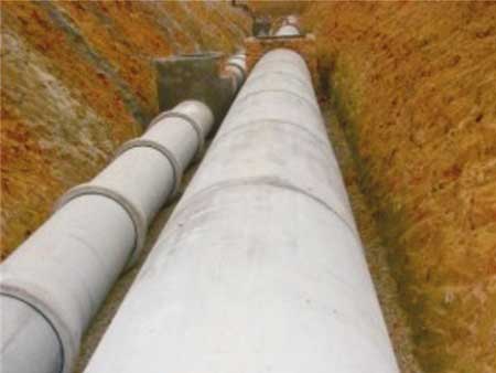 工程放樣→挖溝開挖及地基處理→基礎(chǔ)墊層→下管、安管→澆注管座混凝土→附屬結(jié)構(gòu)施工→水壓試驗→溝槽回填。