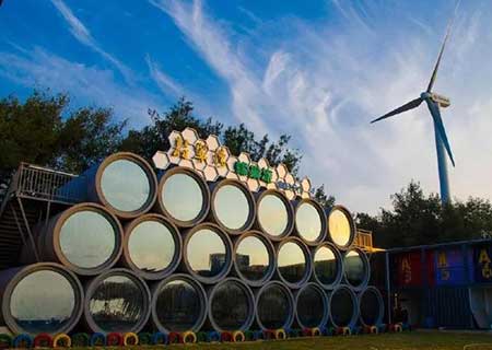 在足夠的場(chǎng)地里用水泥管做元素